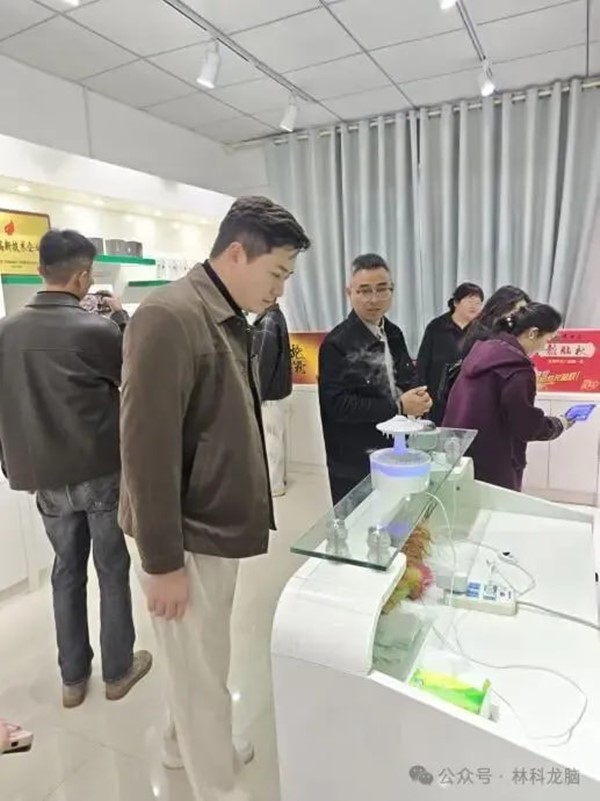 林科龍腦的系列產品,涵蓋藥用冰片、龍腦精油、香薰等多個品類。考察團對龍腦產品在康養領域的應用潛力表現出濃厚興趣,圍繞產品適配性、定制化開發等議題展開探討。